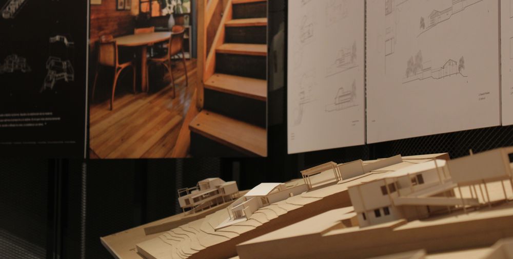 La muestra recorre 10 obras de arquitectura y un conjunto de muebles, a través de maquetas, fotos y planos, que dan cuenta del diálogo entre la obra, la materia y el lugar.