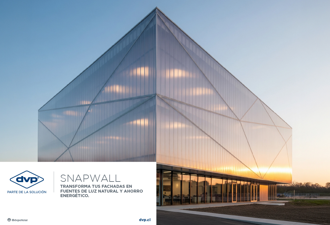 Snapwall es un sistema autoportante de policarbonato alveolar multipared, ideal para proyectos modernos como fachadas verticales, cerramientos y divisorios traslúcidos. Aprovecha al máximo la luz natural y artificial para crear espacios más luminosos, modernos y visualmente integrados.