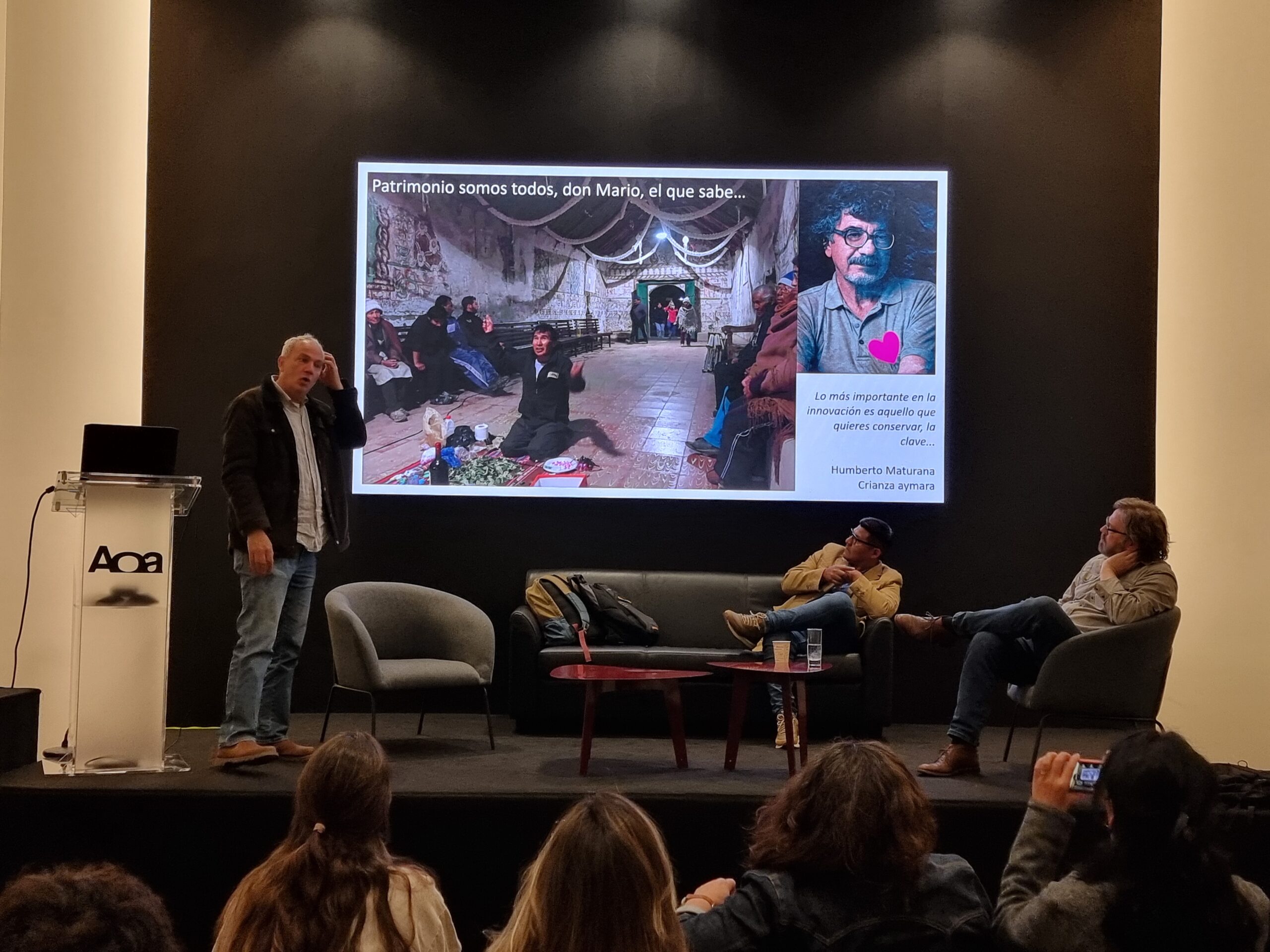 A través de la presentación de la restauración del Teatro de la ex Oficina Salitrera y Campo de Prisioneros Chacabuco (Región de Antofagasta) y de la Escuela de Conservación Sarañani! (Región de Arica y Parinacota), los arquitectos Andrés Aninat e Israel Quispe dieron cuenta —en una charla en el espacio AOA, moderada por Cristián Heinsen, Director de Desarrollo de Fundación Altiplano— de los procesos de arquitectura regenerativa que cruzan ambos proyectos.