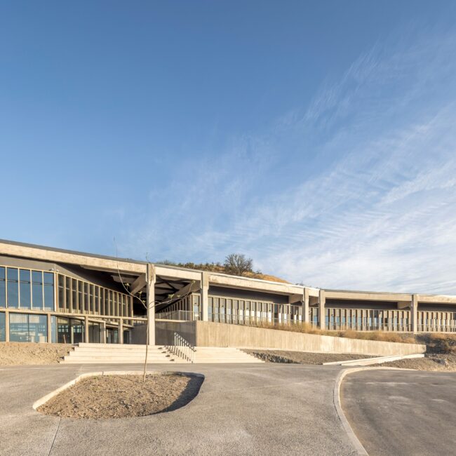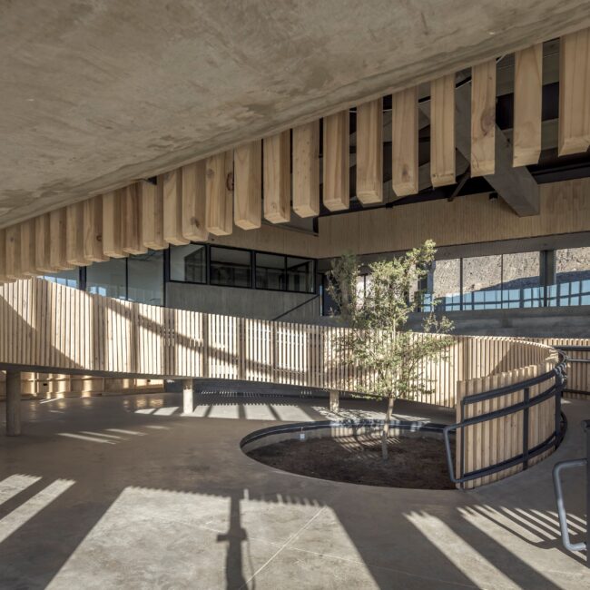 Por último, el colegio propone un diseño y operación que promueve soluciones basadas en la naturaleza, tanto para su paisajismo con predominancia de flora nativa esclerófila de bajo consumo hídrico, a la ventilación cruzada e iluminación natural, junto al diseño de la techumbre para soportar una granja solar y un sistema de cosecha e infiltración de las aguas lluvias que recarga la napa, permitiendo educar desde la infraestructura a las futuras generaciones de nuestro país.